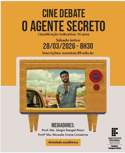 As coordenações de Artes, Licenciatura em Geografia, Licenciatura em Ciências da Natureza e Ciências Humanas realizarão no sábado 28/03/2026 o Cine Debate referente ao filme "O Agente Secreto".